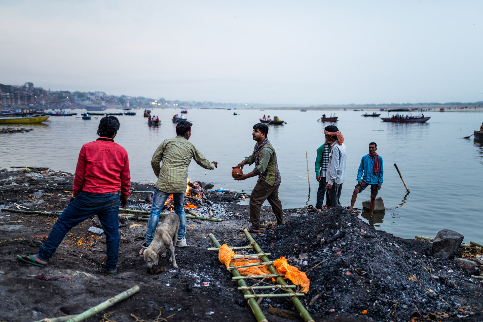 On Varanasis western banks of the Ganga River every day dozens of bodies are being cremated. The place is holy in Hinduism and it is said that the funeral fires here at the ghats have been burning for hundreds of years now.